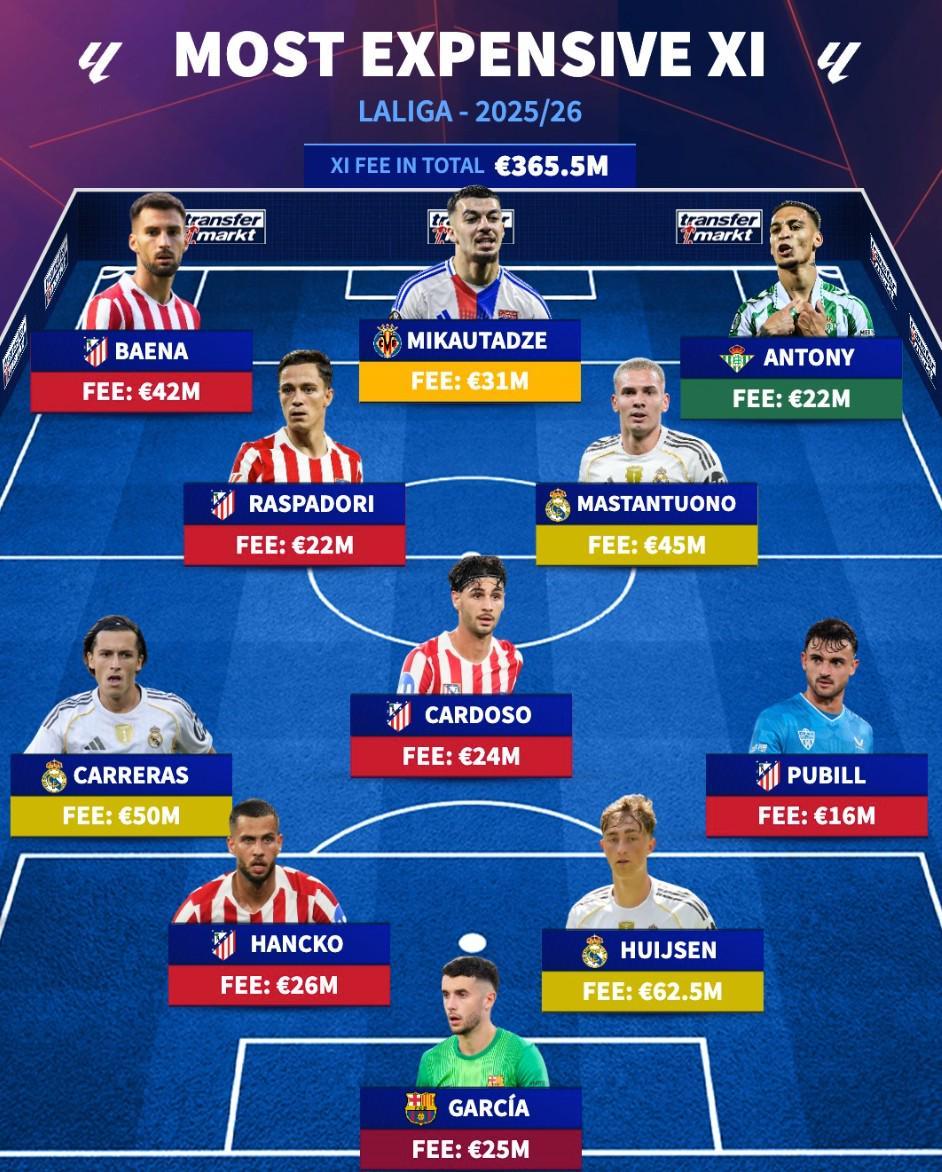 西甲今夏引援最贵11人阵容: